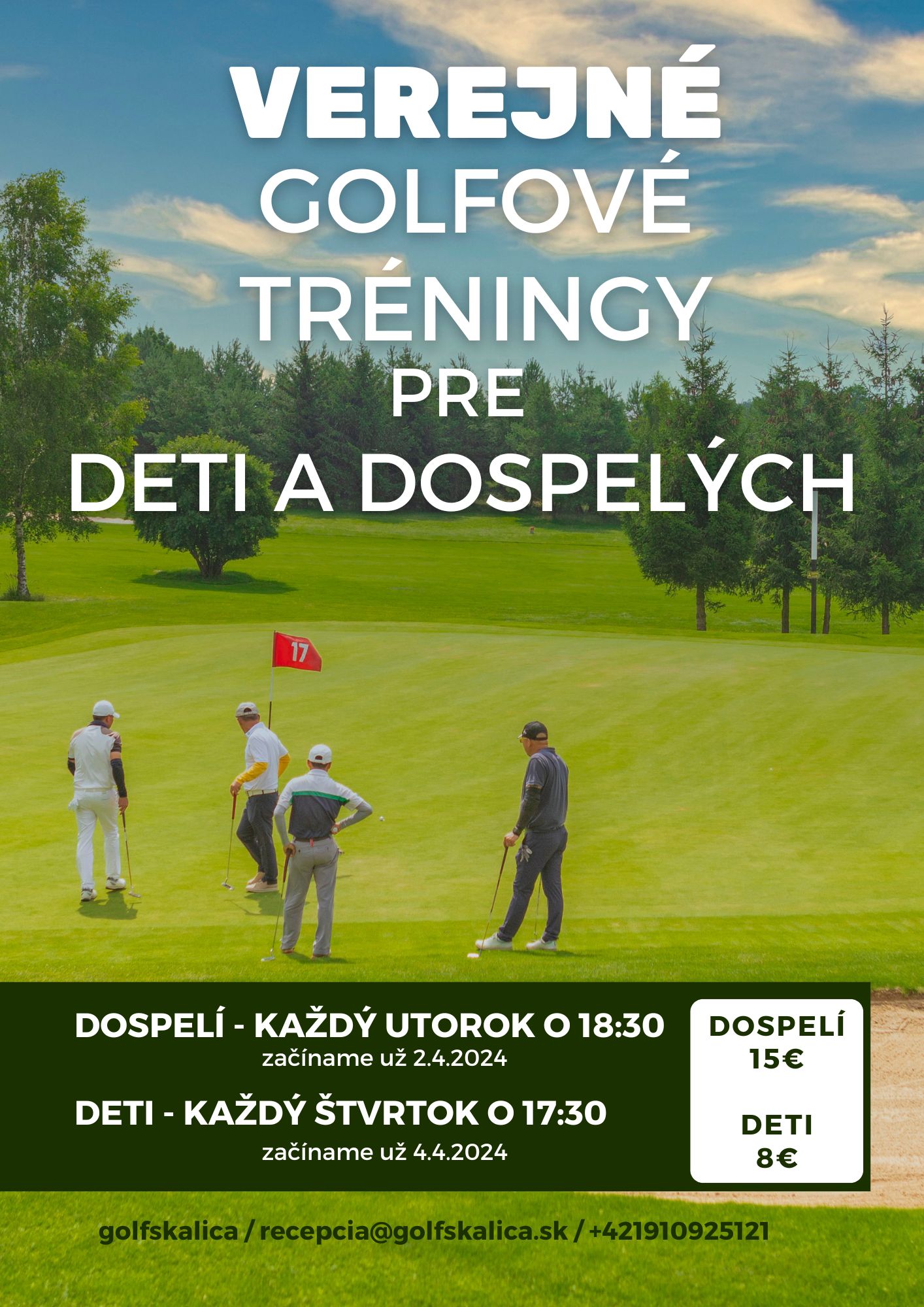 Verejné golfové tréningy pre dospelých začínajú v utorok 2. apríla 2024 o 18:30 hod. a pre deti v štvrtok 4. apríla 2024 o 17:30 hod.